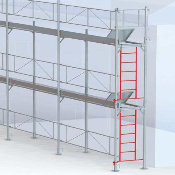 - Durch den innenliegenden Aufgang ist ein sicheres und bequemes Aufsteigen im Gerüst möglich