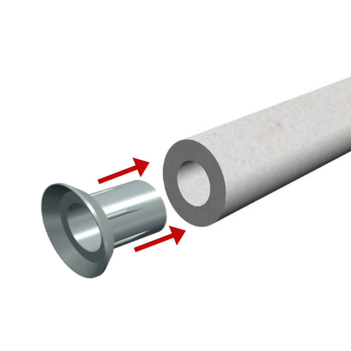 Die Druckkonen werden auf das Abstandsrohr aufgesteckt.