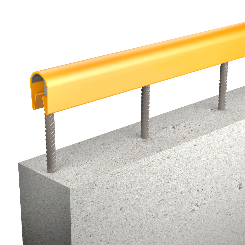 spacers made of impact-resistant material for breaking edges on square columns and beams, but also for decorating large exposed concrete parts.