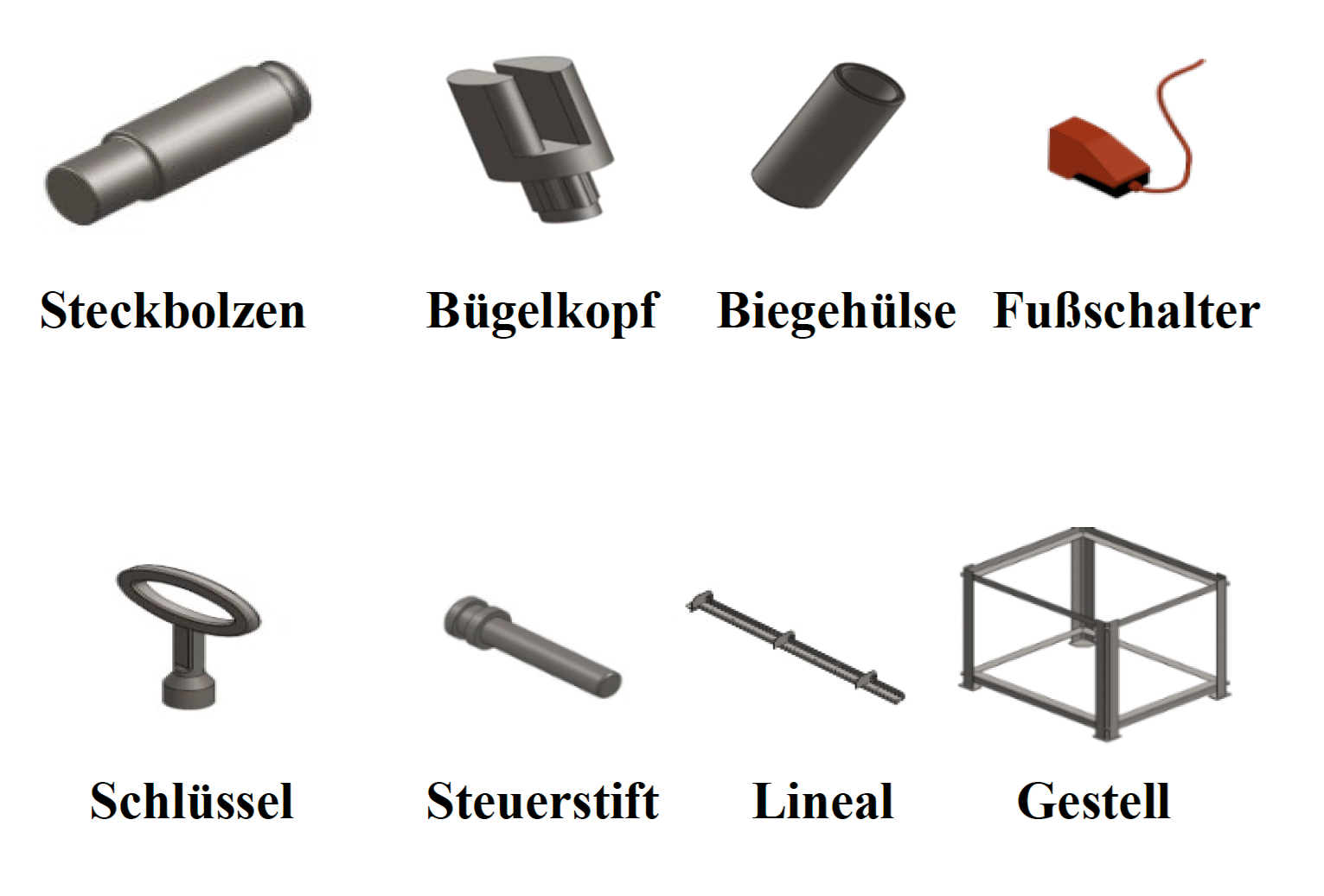 Die Maschine ist zum Biegen von Stahl-/Bewehrungsmaterial bestimmt. Das Material wird in den vorgesehenen Bügelkopf eingelegt. Mithilfe des Biegebolzens kann das Material sowohl im Manuell- als auch im Automatik-betrieb durch Betätigen des Fußschalters gebogen werden. Es sind bis zu 9 Biegesequenzen programmier- und die Winkel über die Steuerstifte einstellbar.