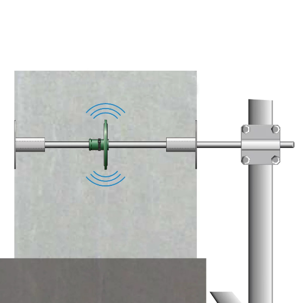 Wall traverse with M10 gound clips for wall strengths 200 - 500 mm. The position of connectors can be adjusted to different heights and depths. Ground clips V4A stainless steel, steel rope Ø 10 mm Additional type available with water barrier "Safe".