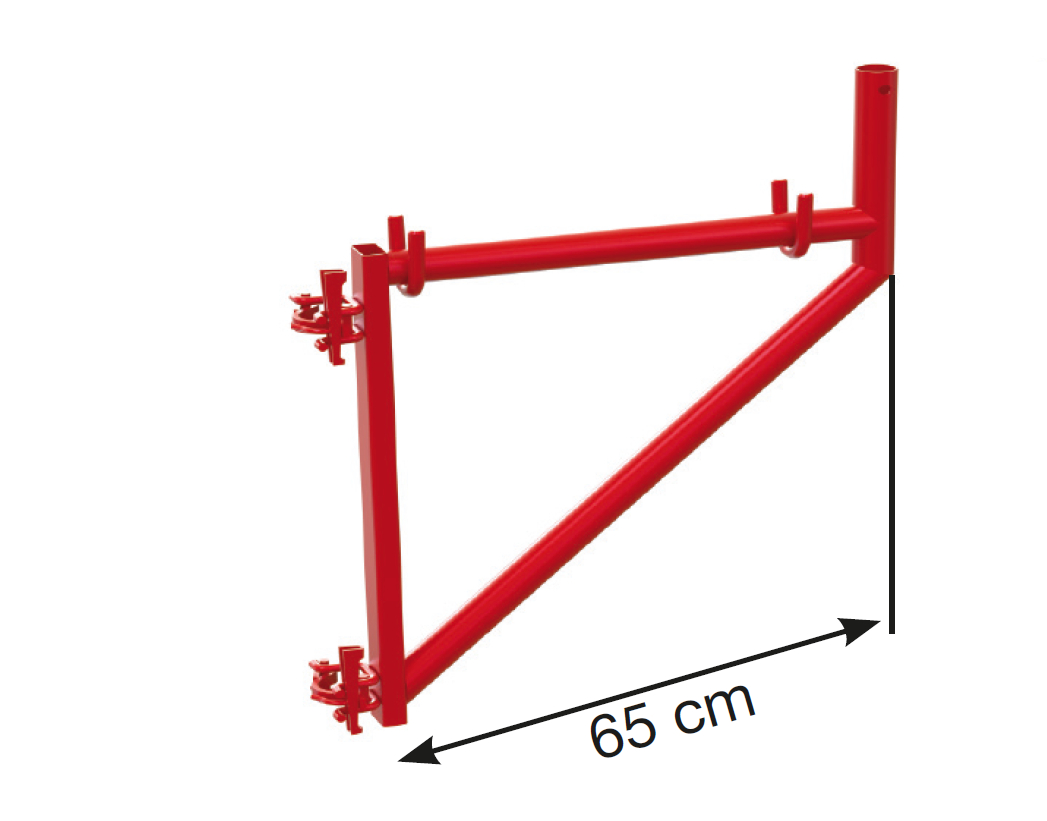 Durch eine Keil-Kupplung am Gerüstende und eine stabile Fußplatte am anderen Ende ohne weiteres Zubehör sofort einsetzbar
