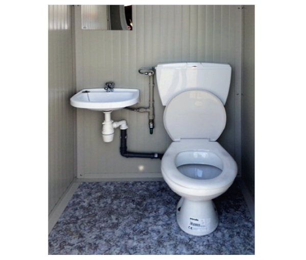 Ausstattung:Fäkaltank 240 l mit SpritzschutzklappeWC mit RezirkulationsspülungHandwaschbeckenUrinalZweirollenhalterKranhakenSpiegelKleiderhakenSelbstschließender TürVorhängeschlossvorrichtungMöglichkeit für Bodenverankerung